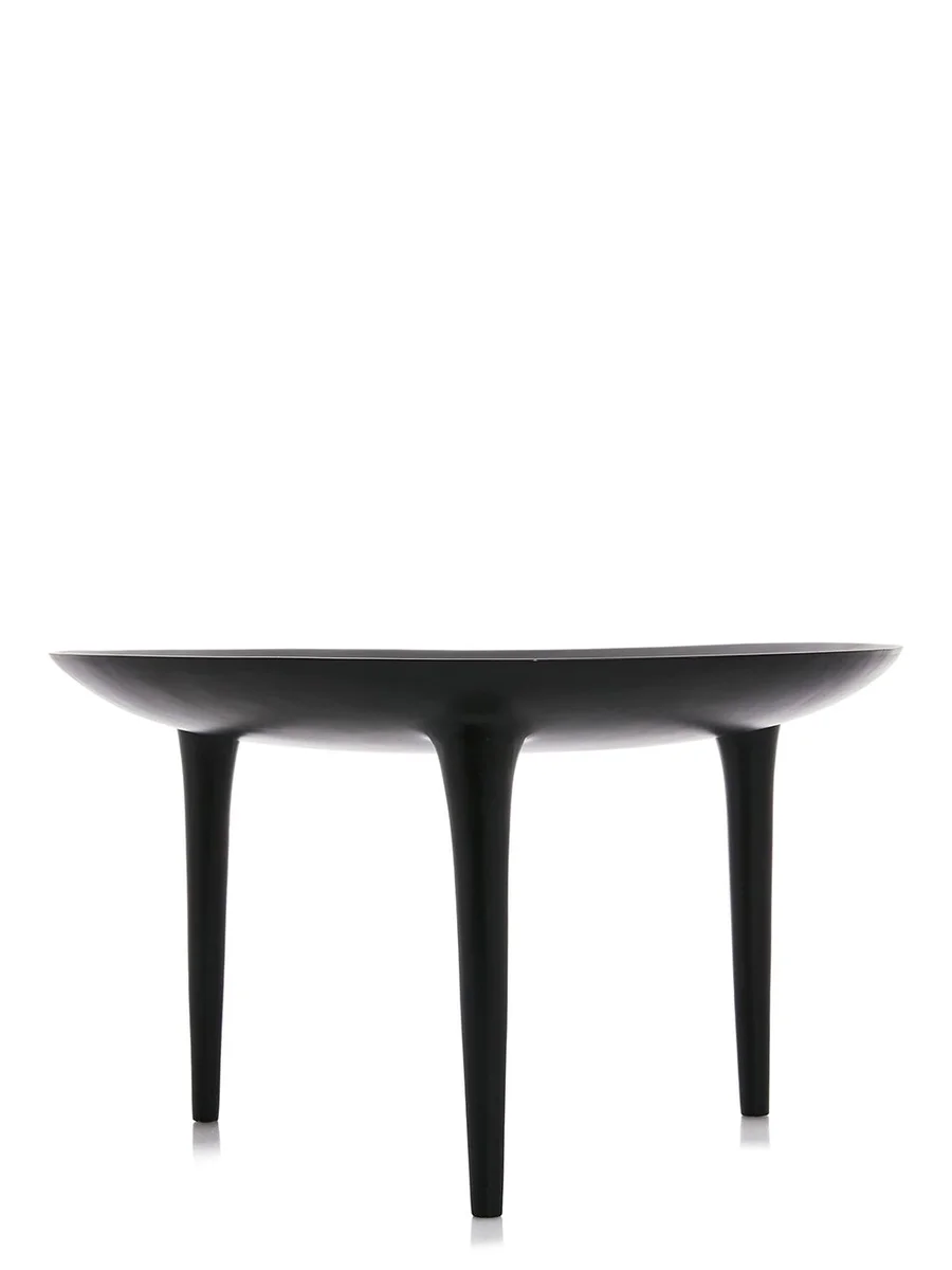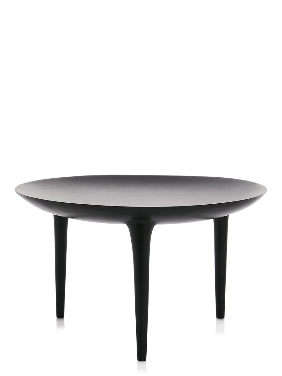 RICK OWENS BRAZIER IN BLACK BRONZE IS A ROUND SHAPED THREE LEGGED TABLE WITH POLISHED SURFACE.