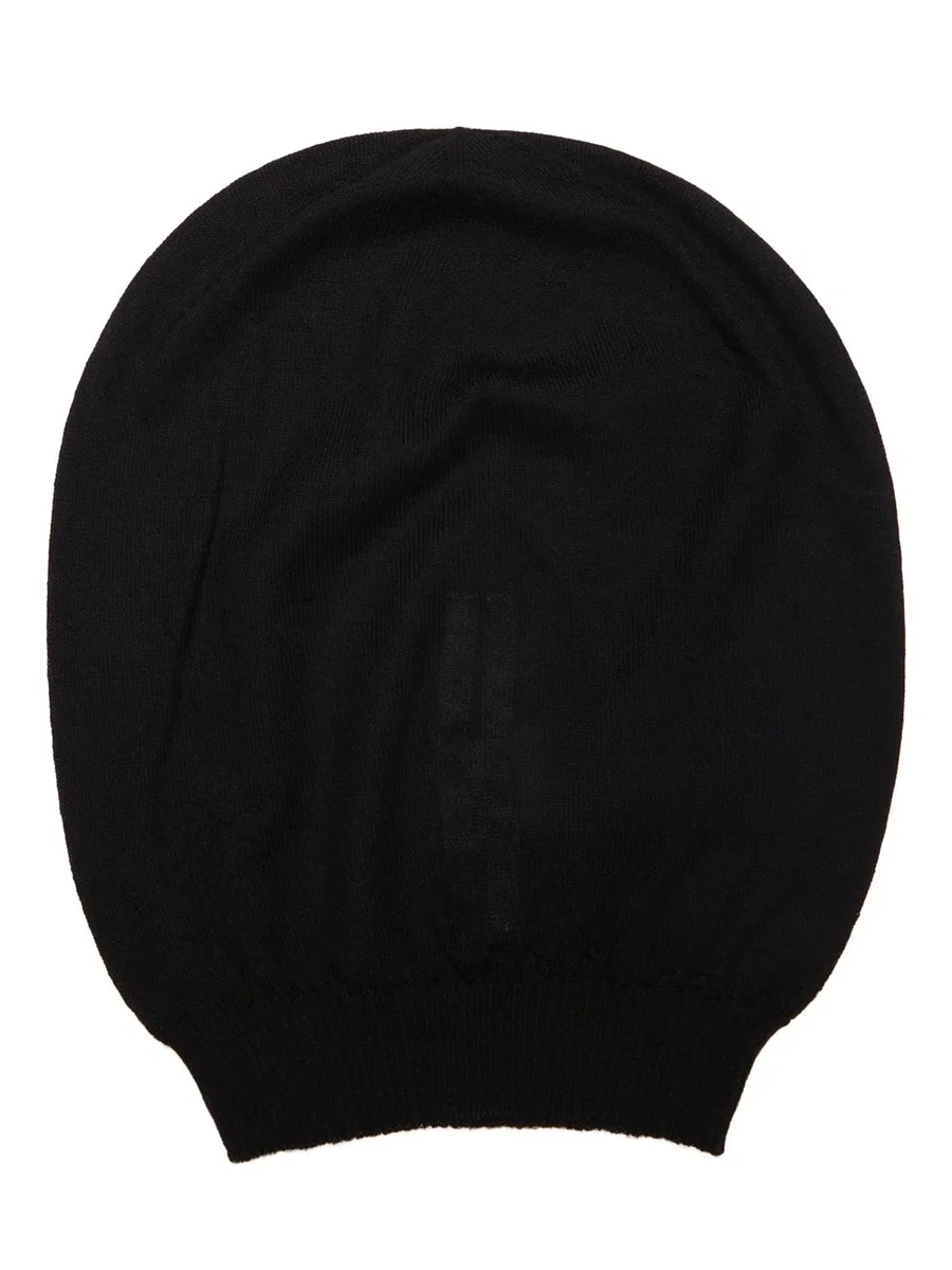 RICK OWENS FW25 CONCORDIANS MEDIUM HAT IN BLACK LIGHTWEIGHT CASHMERE KNIT
