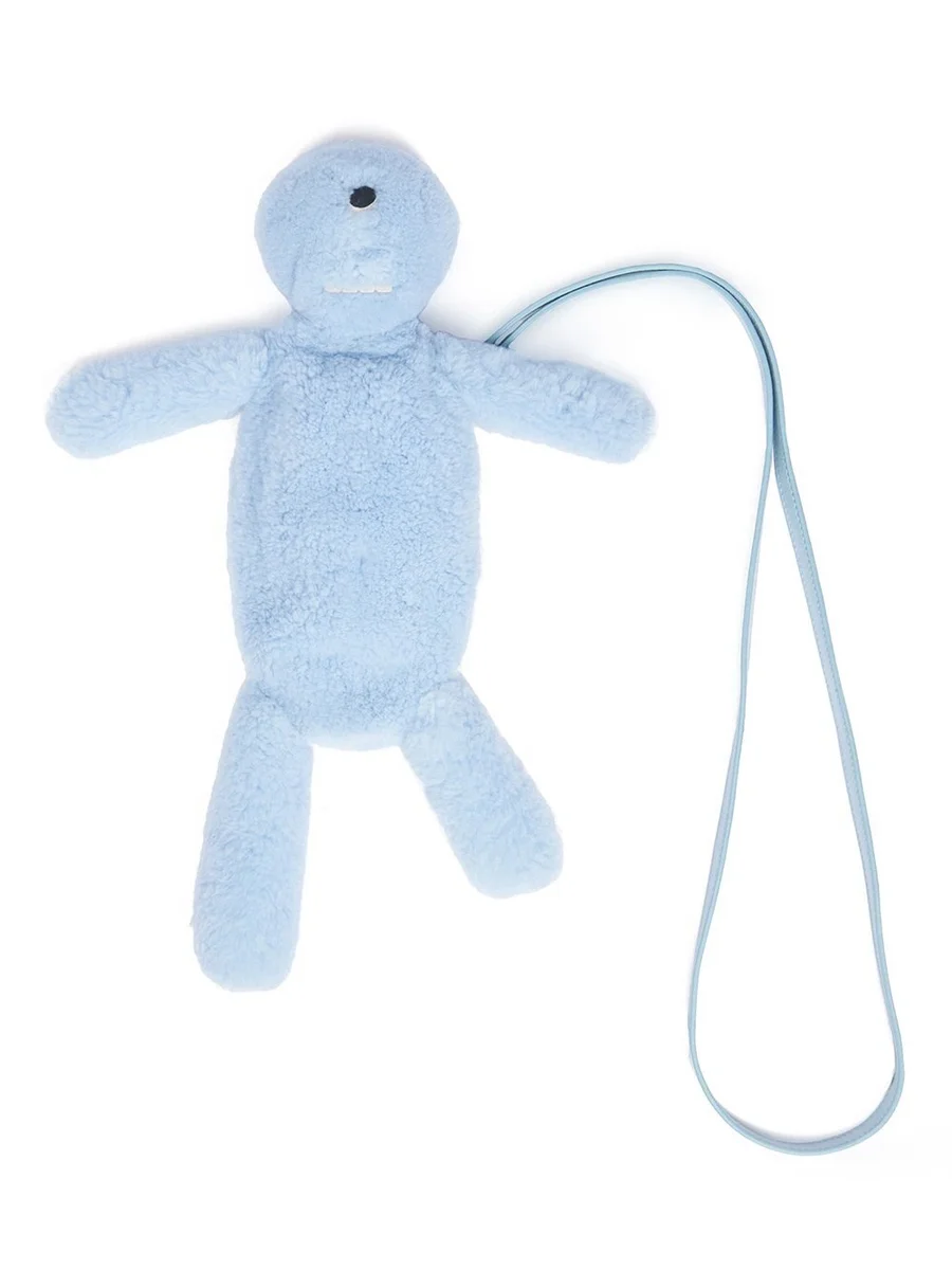 THIS CYCLOP FEATURE ONE EYE, TEETH, A SECRET ZIPPER POCKET ON THE BACK AND A DETACHABLE LONGSHOULDER STRAP. IT ALSO HAS THE FEATURE OF A SMALL BAG.