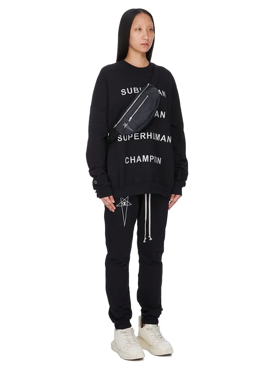 CHAMPION X RICK OWENS SS25 BUMBAG IN BLACK LIGHT NYLON