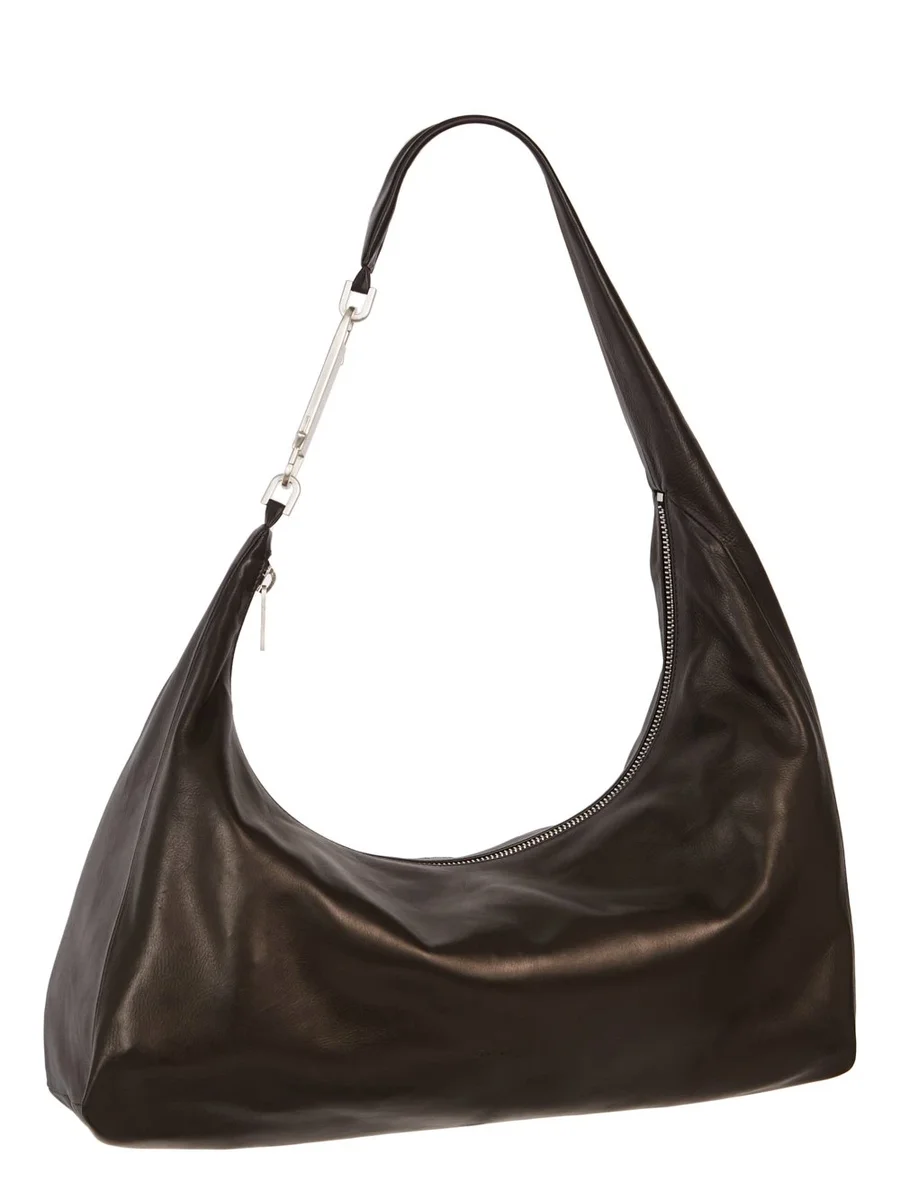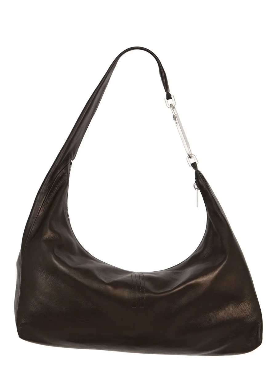 THIS GEMINI CROPPED BAG IS A SMALLER VERSION OF OUR LARGE GEMINI BAG. IT IS A SOFT A-SHAPED BAG THAT SLOUCHES IN THE MIDDLE. IT CURVES OVER TO CREATE A STRAP THAT SECURES WITH A GEMINI DOUBLE-ENDED SNAP HOOK ENGRAVED WITH THE RICK OWENS LOGO. THE BAG OPENS WITH A TOP ZIP, HAS AN INNER POUCH POCKET, AND A FLAT POCKET WITH SIGNATURE U-SHAPED STITCHING DETAIL VISIBLE ON THE REAR EXTERIOR.