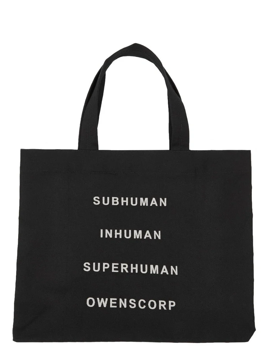 RICK OWENS BEACH BAG IN BLACK/PEARL HEAVY COTTON CANVAS