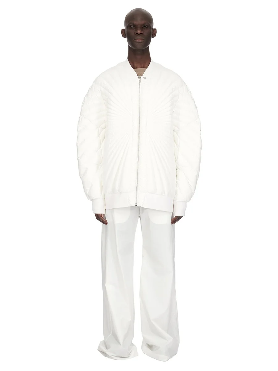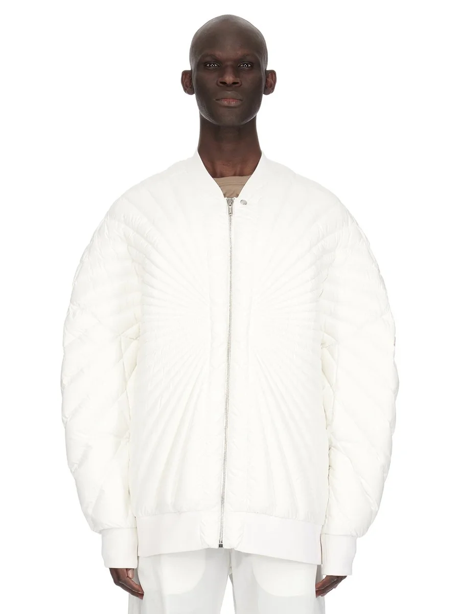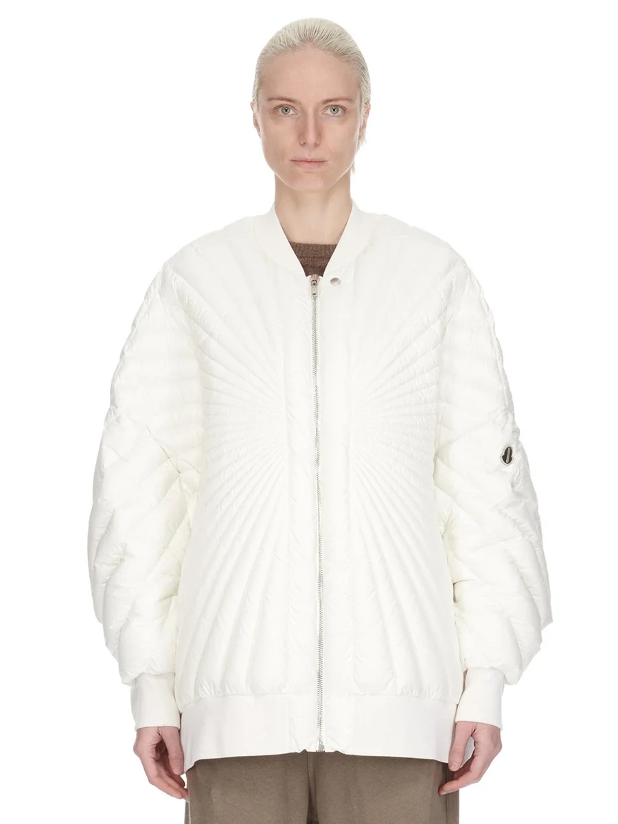 MONCLER +RICK OWENS FW24 RADIANCE PETER JKT IN MILK RECYCLED LONGUE SAISON WITH RADIANCE QUILTING