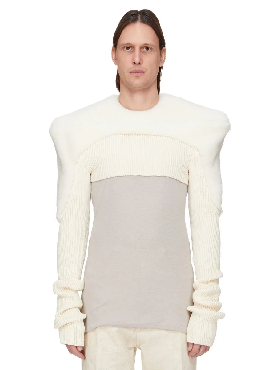 RICK OWENS FW25 CONCORDIANS RUNWAY TIGHT PULLOVER JKT IN MILKALBINO SHEARLING