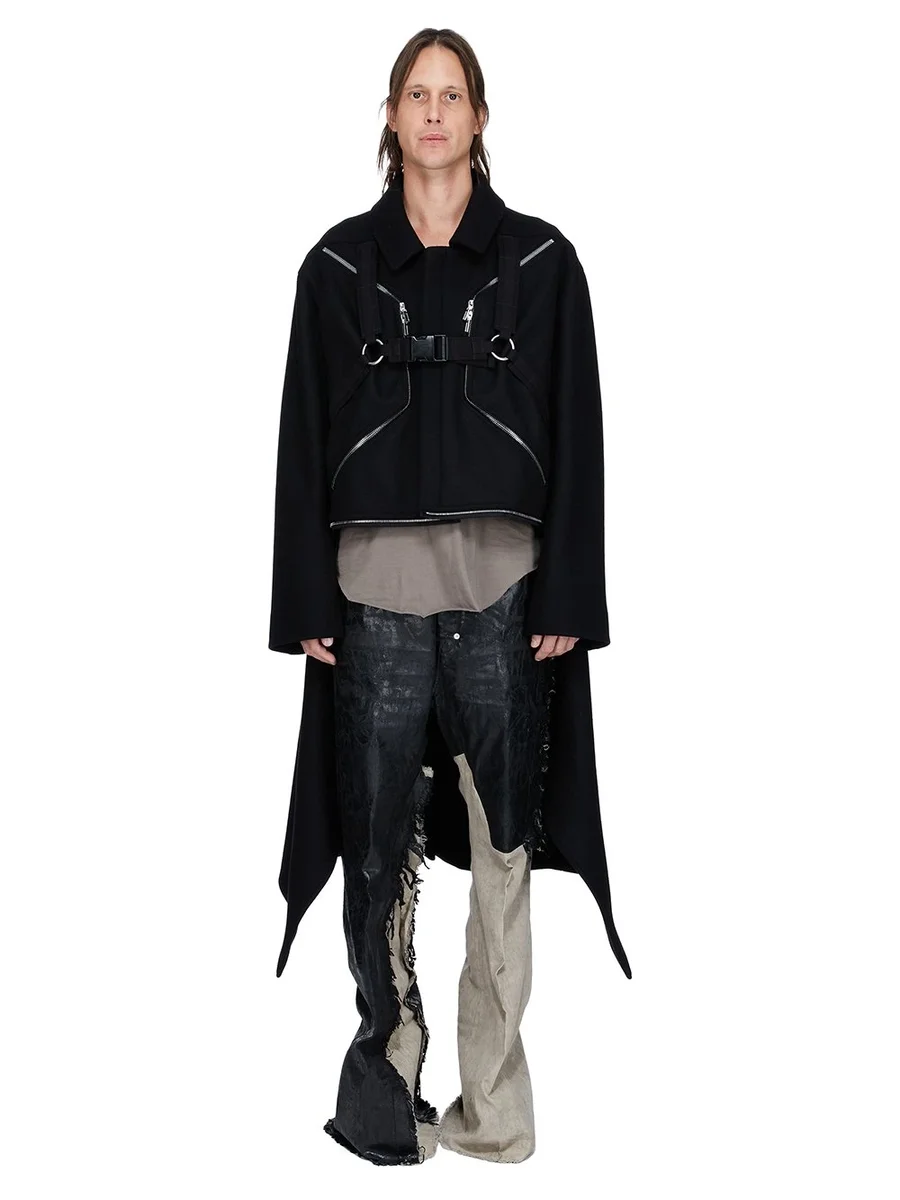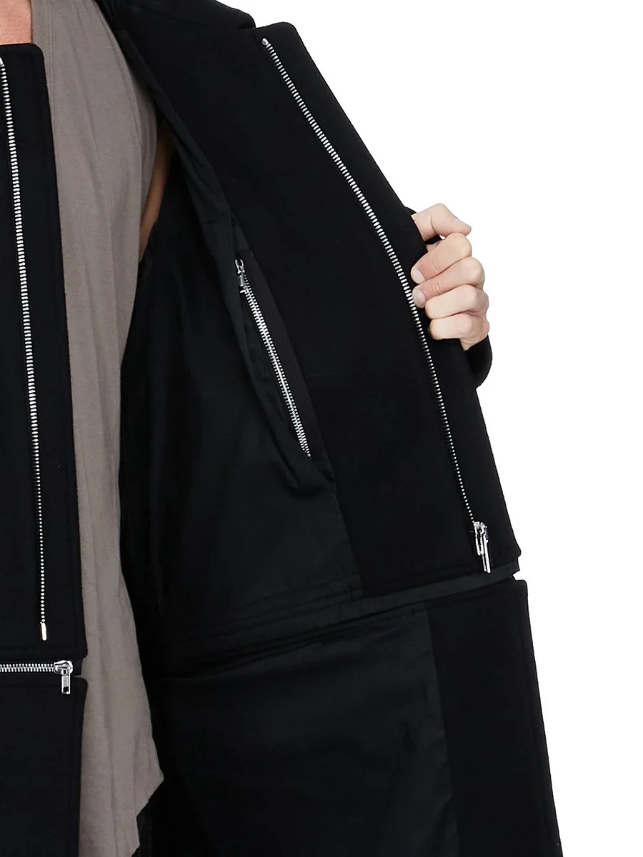 RICK OWENS FW25 CONCORDIANS RUNWAY BLIXA JUMBO MAC IN BLACK MELTON