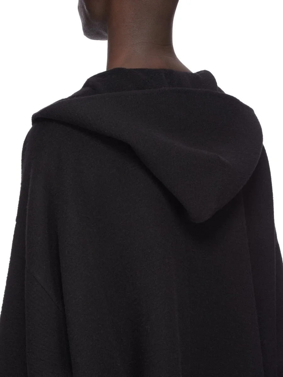 THIS LS KAFTAN KNEE IS KNEE LENGTH WITH LONG, WIDE SLEEVES. IT HAS A LARGE HOOD WITH A V NECK AND SEAM RUNNING DOWN THE CENTRE FRONT AND BACK. IT IS A VOLUMINOUS KAFTAN SHAPE, WITH A WIDE SHOULDER FALLING INTO A DROPPED ARMHOLE.