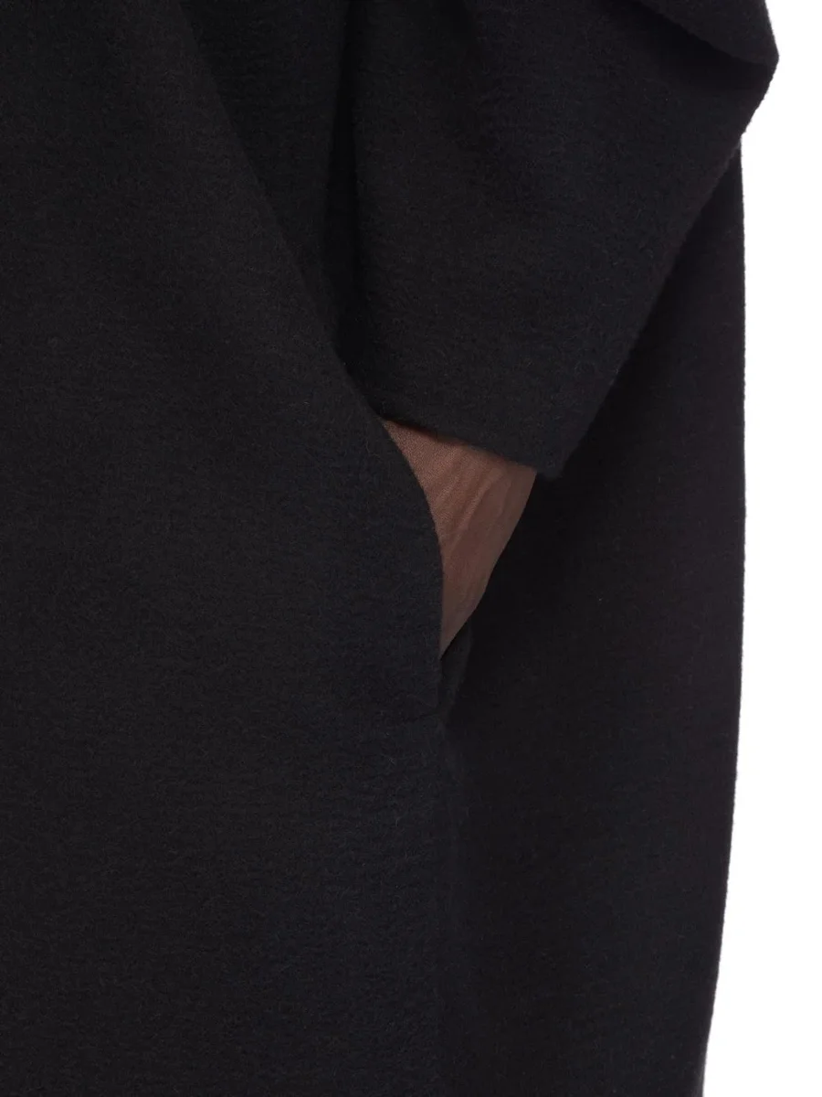 RICK OWENS FW25 CONCORDIANS RUNWAY LS KAFTAN KNEE IN BLACK DOUBLE CAMEL