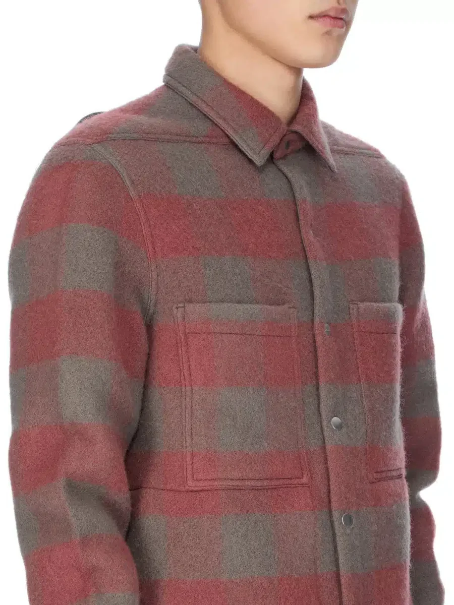 RICK OWENS FW25 CONCORDIANS OUTERSHIRT IN ROSEWOOD PLAID JUMBO PLAID