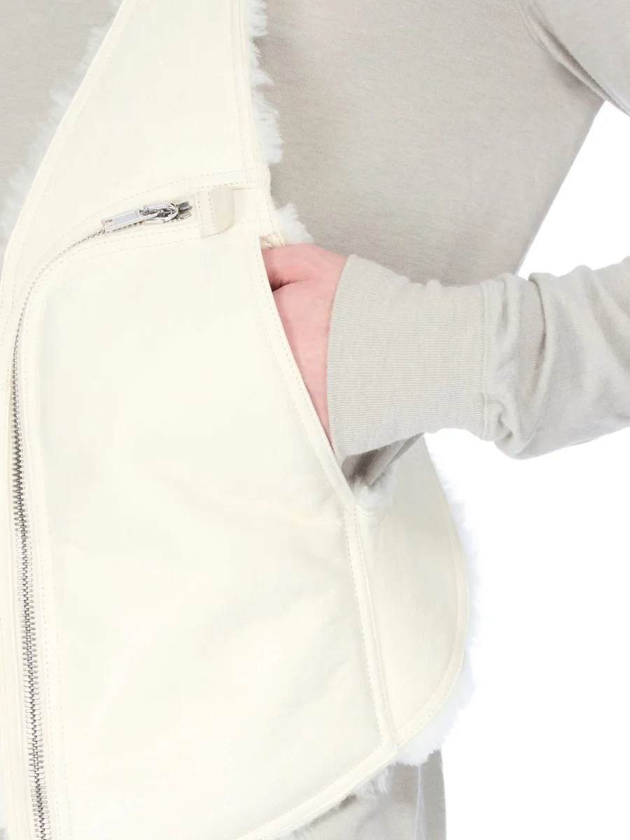 RICK OWENS FW25 CONCORDIANS BAUHAUS VEST IN MILK ALBINO SHEARLING