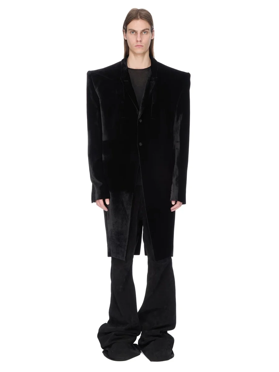 RICK OWENS FW25 CONCORDIANSFOGPOCKET RICKS COAT IN BLACK VELVET