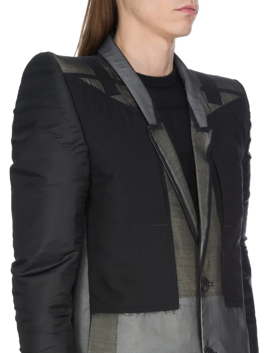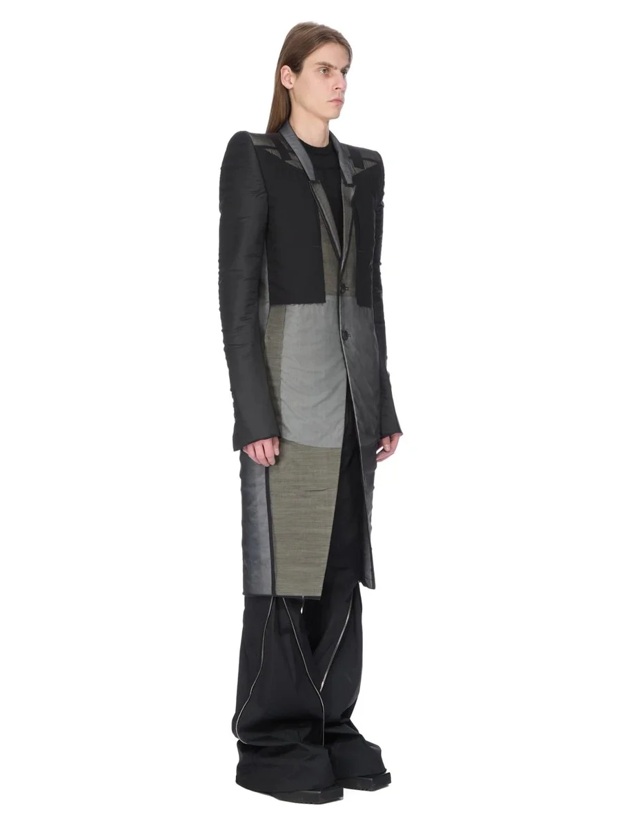 RICK OWENS FW25 CONCORDIANS FOGPOCKET NEUE COAT IN BLACK SILK CHIFFON AND CUPRO TWILL