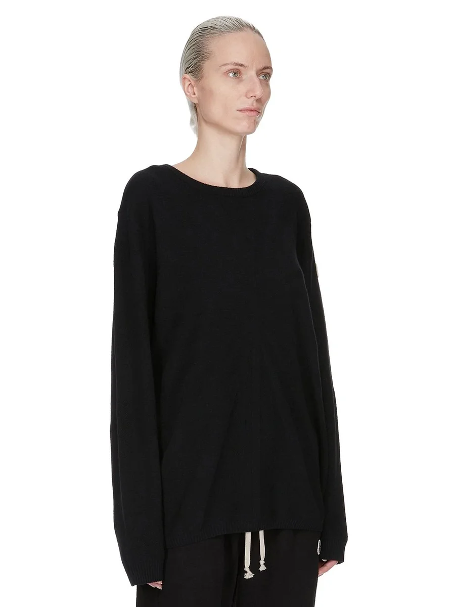 MONCLER +RICK OWENS FW24 JUMBO ROUND NECK IN BLACK WOOL-CASHMERE BLEND