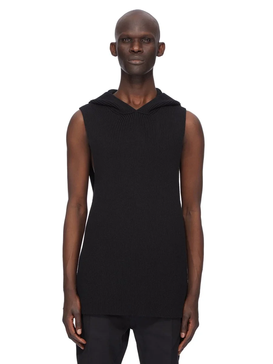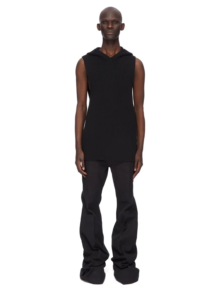 RICK OWENS FW25 CONCORDIANS RUNWAY HOODED TANK IN BLACKWOOL