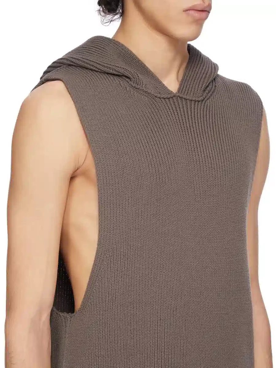 RICK OWENS FW25 CONCORDIANS RUNWAY HOODED TANK IN DARKDUST WOOL