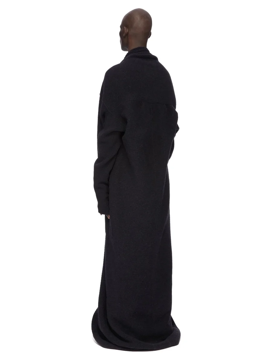 RICK OWENS FW25 CONCORDIANS RUNWAY LONG CARDIGAN IN BLACK ALPACA KNIT