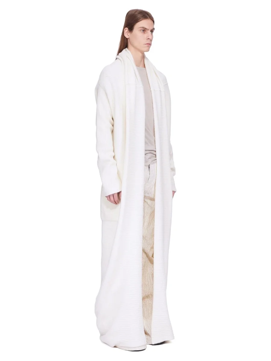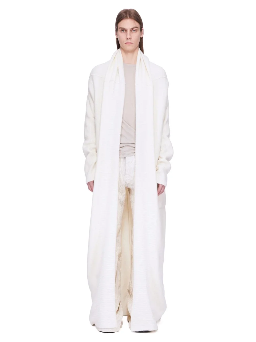 RICK OWENS FW25 CONCORDIANS RUNWAY LONG CARDIGAN IN MILK ALPACA KNIT