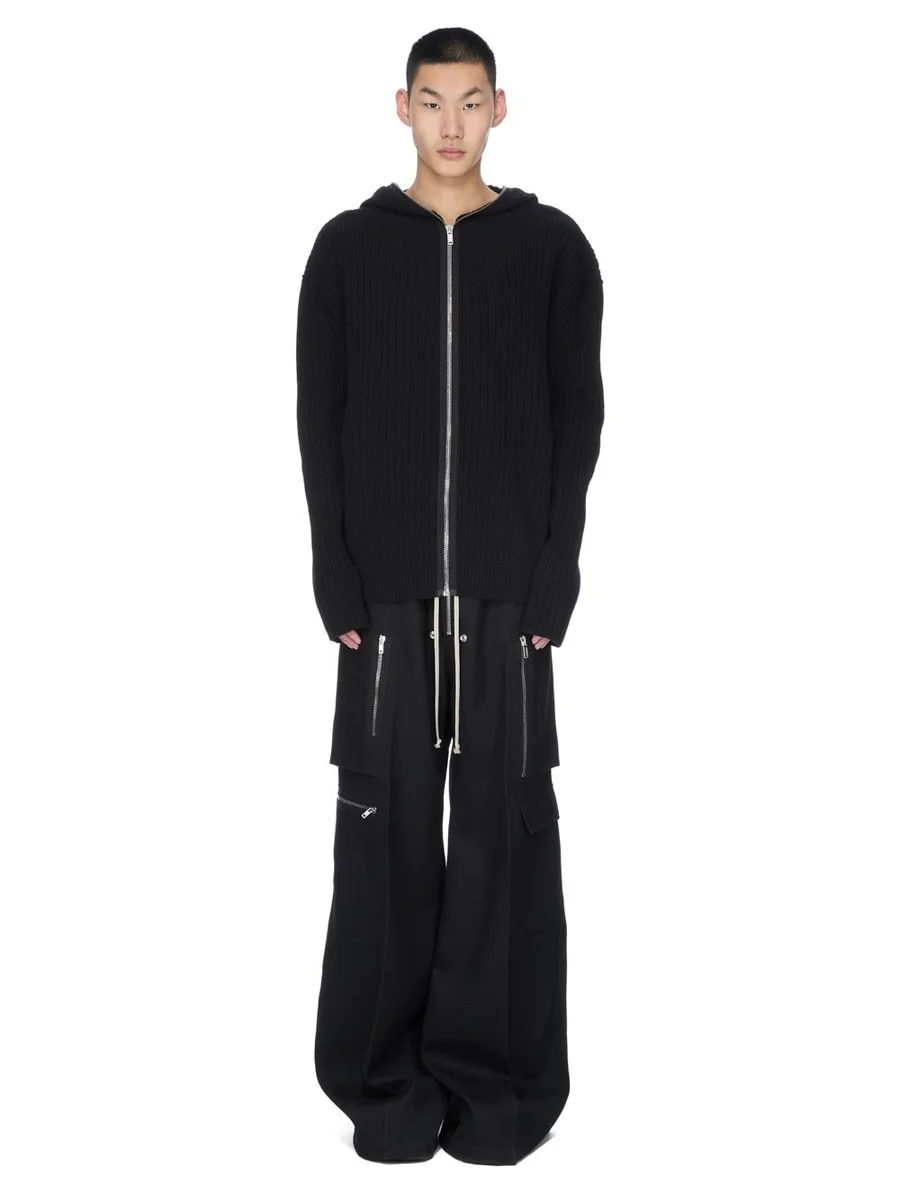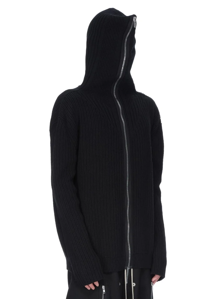 RICK OWENS FW25 CONCORDIANS ZIPPED HOODIE IN BLACK HEAVY WOOL KNIT