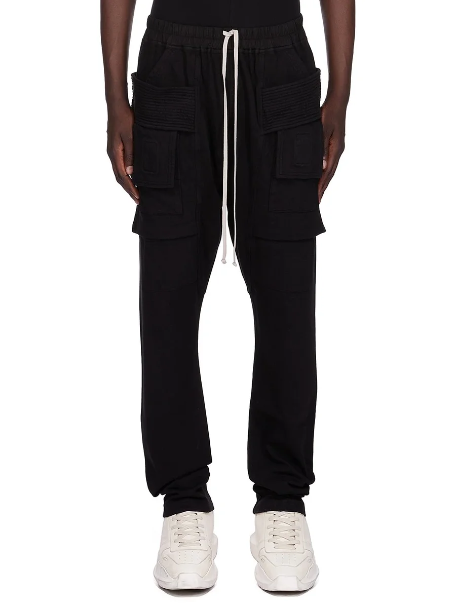 DRKSHDW FW25 CONCORDIANS CREATCH CARGO DRAWSTRING IN BLACK COMPACT HEAVY JERSEY
