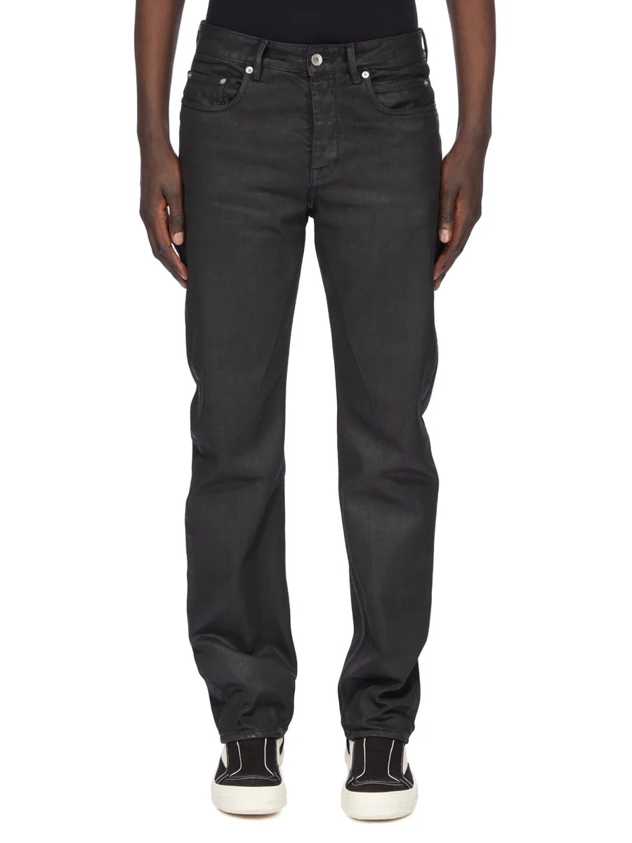 THIS MEDIUMWEIGHT BLACK WAX DENIM IS MADE ON A 13OZ JPBLACK AND NATURAL DENIM. THE READY GARMENT IS OVERDYED BLACK AND TREATED WITH A WAX FINISH. A FINAL WASH GIVES THIS GARMENT ITS SOFTNESS.