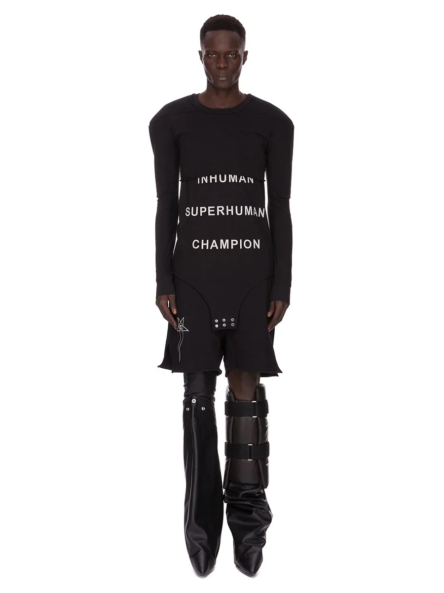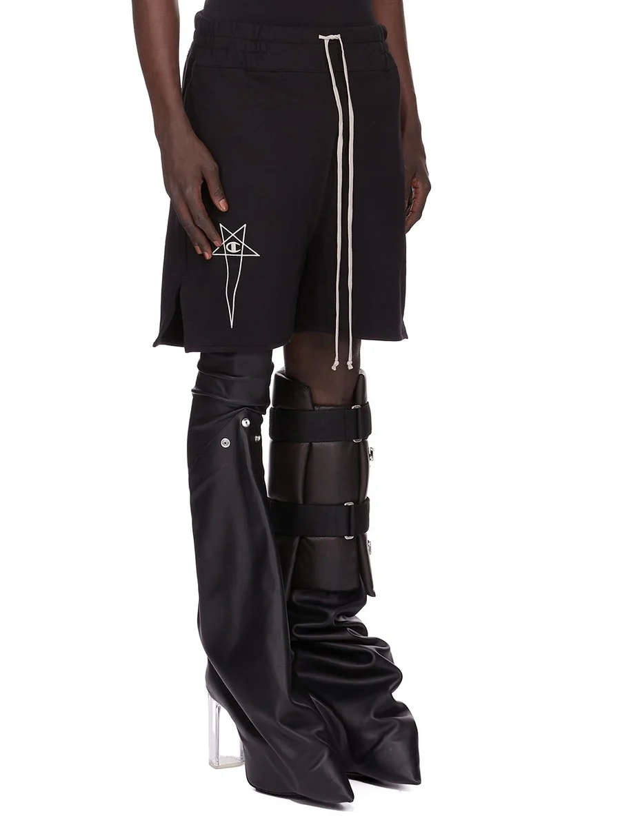 CHAMPION X RICK OWENS SS25 SHORTS IN BLACK COMPACT FELPA JERSEY
