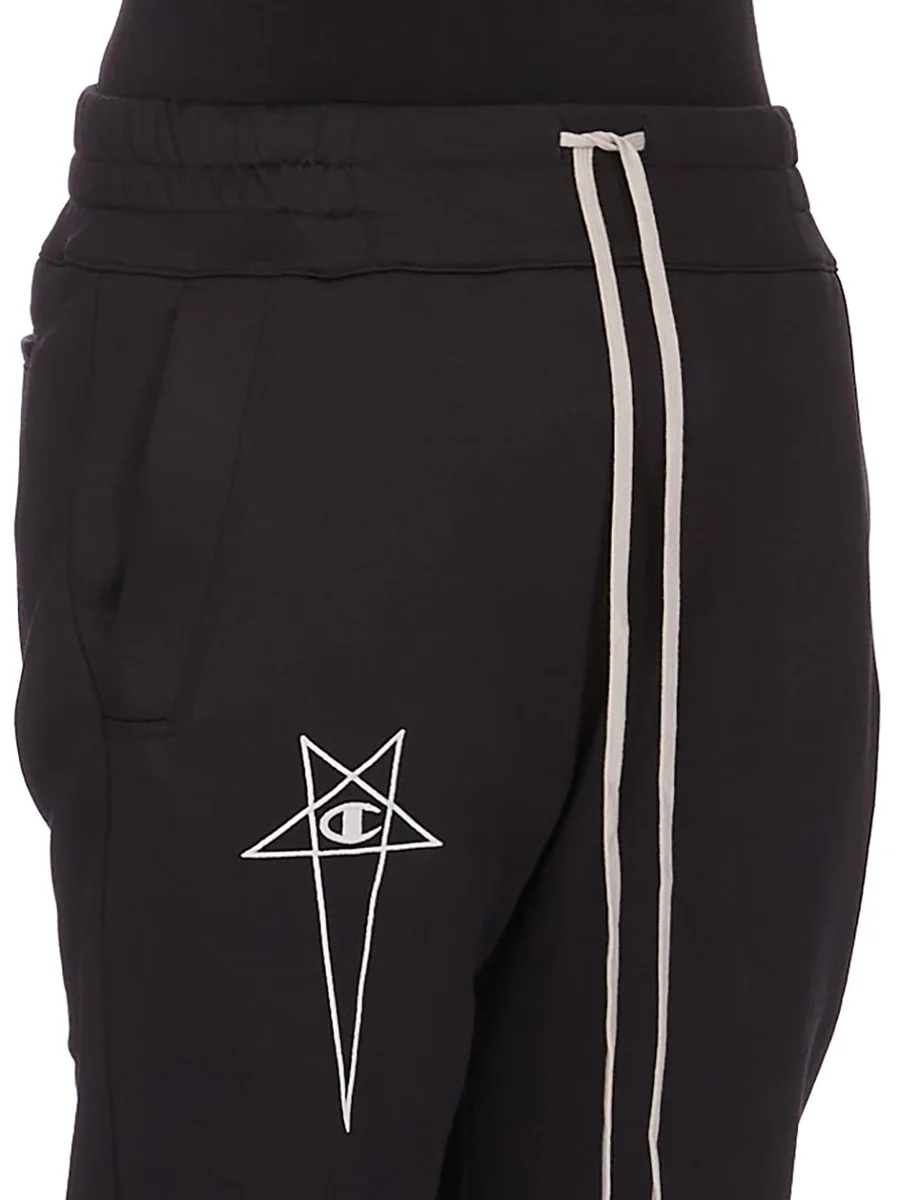 CHAMPION X RICK OWENS SS25 JOGGERS IN BLACK TECHNICAL SWEAT JERSEY