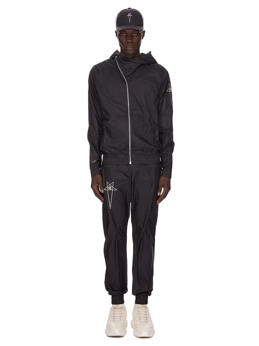 CHAMPION X RICK OWENS SS25 JOGGERS IN BLACK LIGHT NYLON