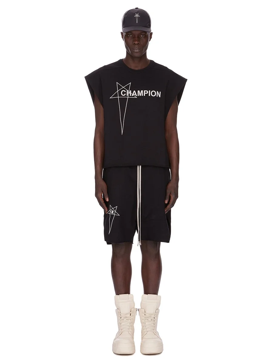 CHAMPION X RICK OWENS SS25 BEVELED PODS IN BLACK COMPACT FELPA JERSEY