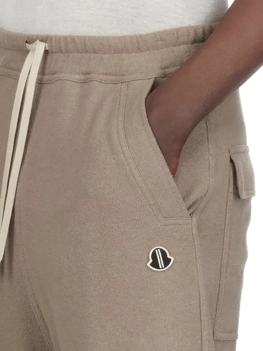 THESE WIDE BELA PANTS ARE FULL-LENGTH WITH A LOW CROTCH AND A WIDE LEG. THEY FEATURE AN ELASTICIZED WAISTBAND WITH DRAWSTRING AND A BELA EXPOSED CENTRE ZIPPER WITH TWO SNAP DETAIL AT BOTTOM. THEY HAVE SIDE POCKETS WITH EYELET AND RIVET DETAIL AND BACK POCKETS WITH FLAPS. IT HAS THE MONCLER +RICK OWENS EMBROIDERED LOGO PATCH ON THE LEFT THIGH.