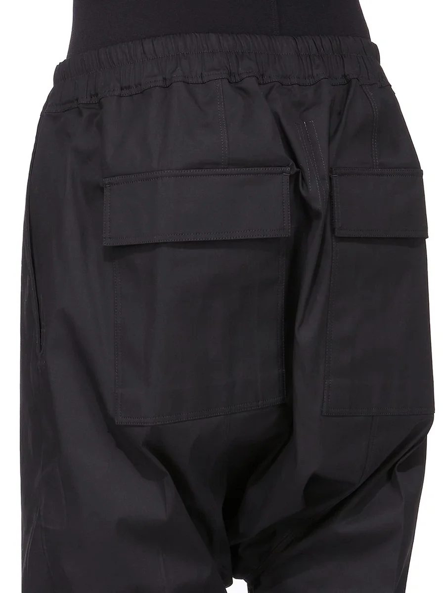 RICK OWENS FOREVER DRAWSTRING LONG IN BLACK HEAVY COTTON POPLIN