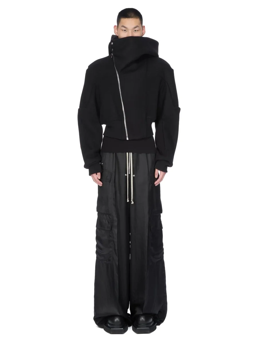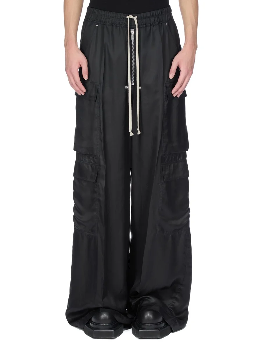RICK OWENS FW25 CONCORDIANS CARGOBELAS IN BLACK CUPRO TWILL
