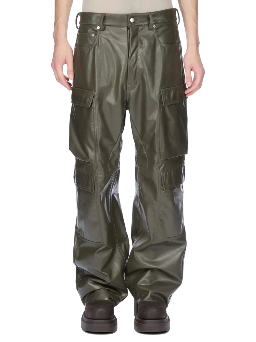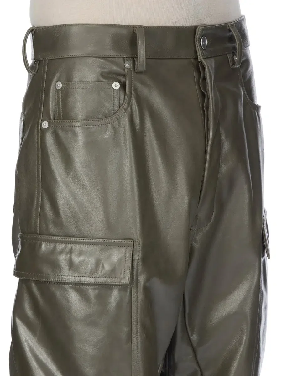 RICK OWENS FW25 CONCORDIANS DOUBLE CARGO JEANS IN BOSCO SUGAR CALF LEATHER