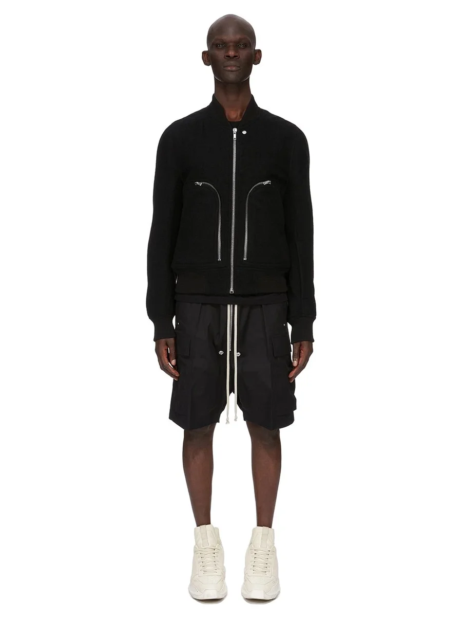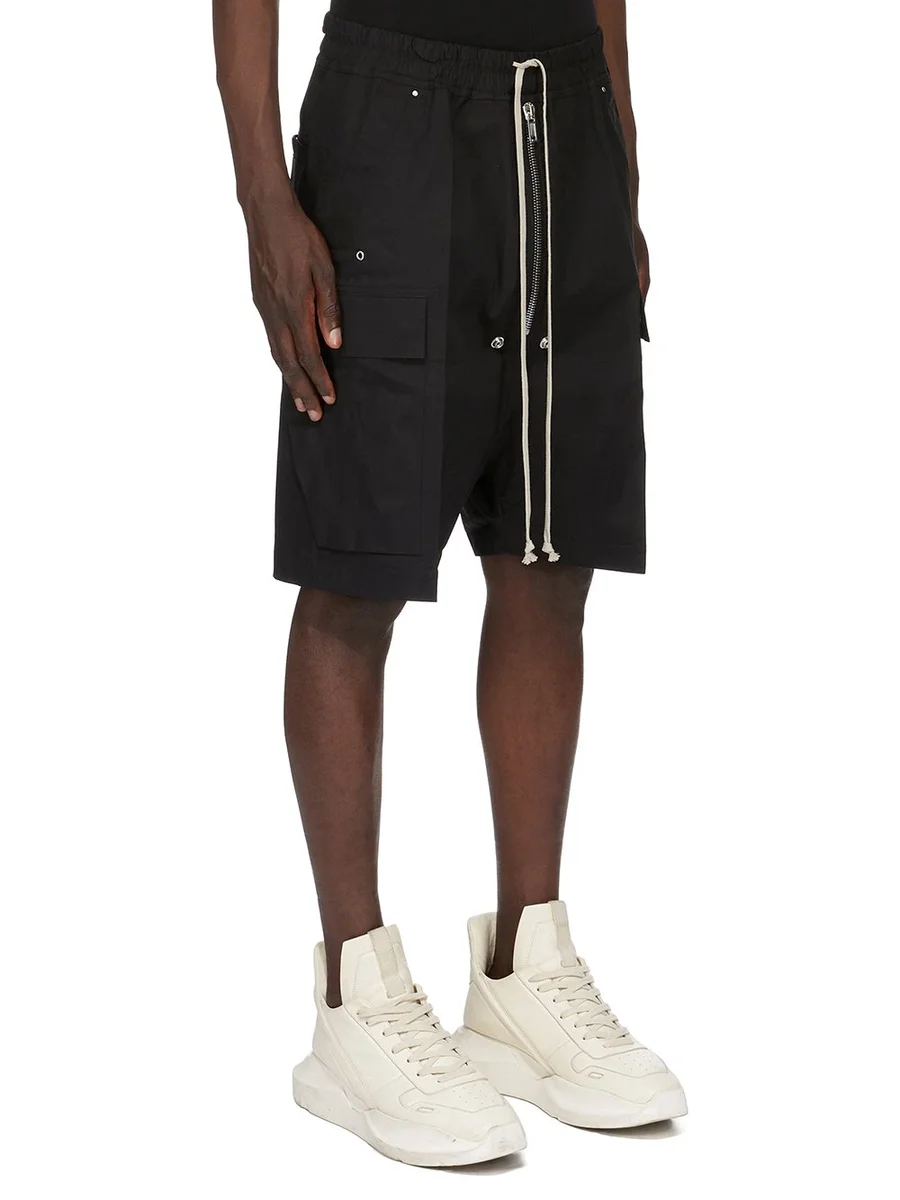 RICK OWENS FW25 CONCORDIANS CARGOBELA SHORTS IN BLACK HEAVY COTTON POPLIN