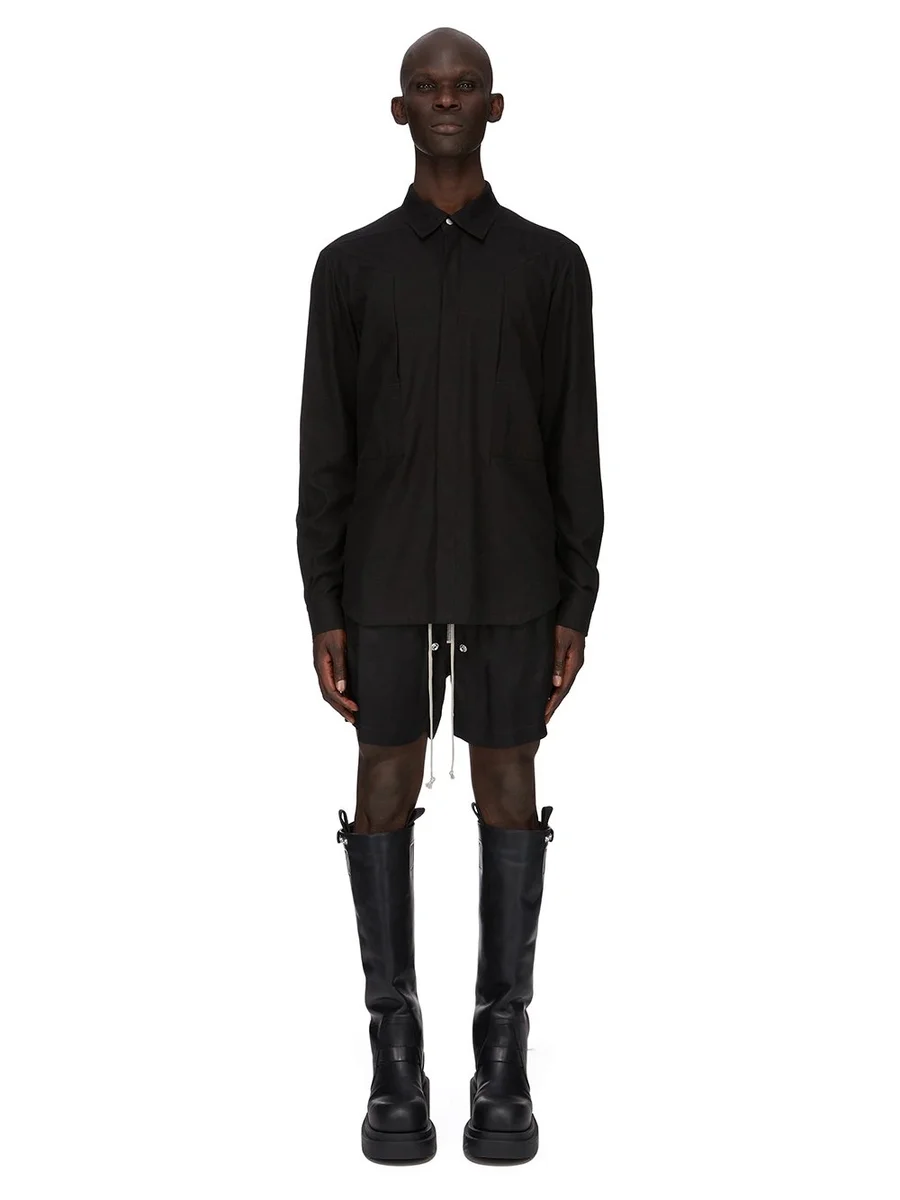 RICK OWENS FW25 CONCORDIANS BELA BOXERS IN BLACK CUPRO TWILL