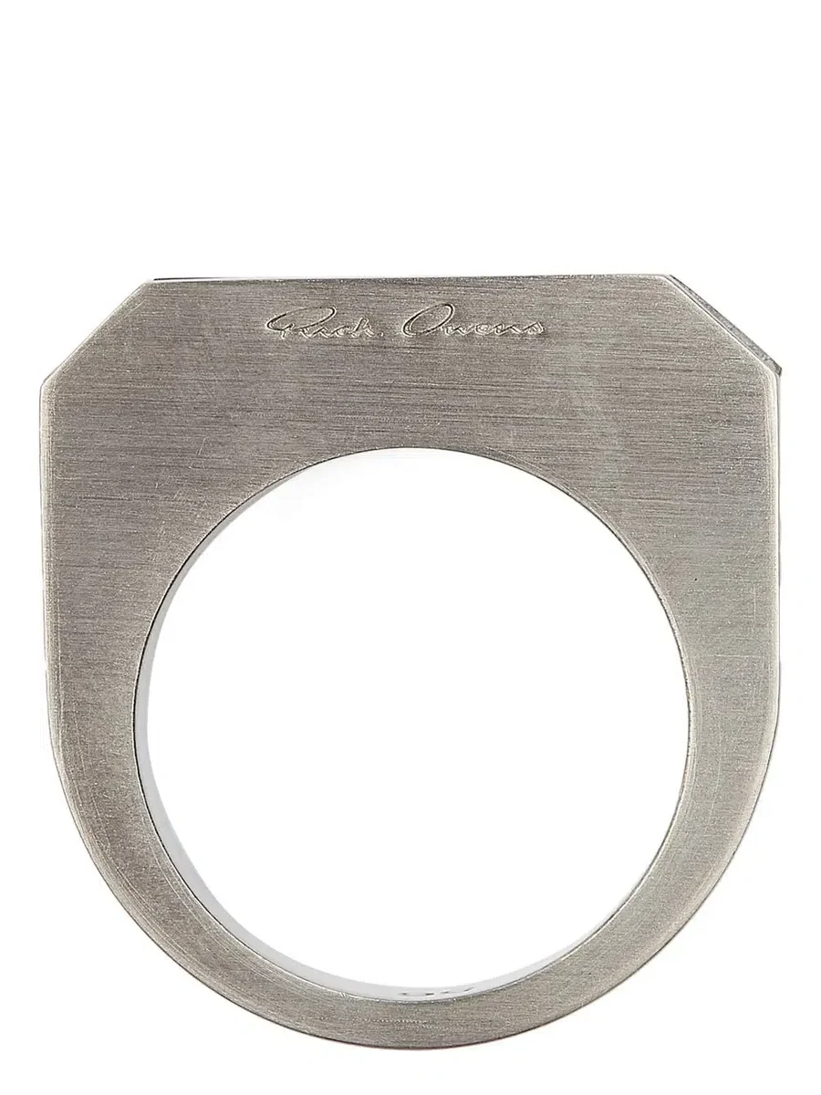 THIS BEVELED RING IS A THICK BAND WITH BEVELED EDGES. IT HAS THE RICK OWENS LOGO ENGRAVED ON THE BACK.