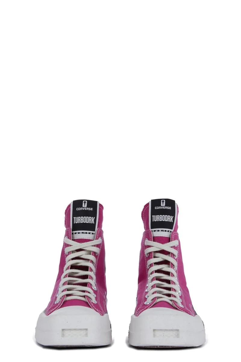 CONVERSE X DRKSHDW TURBODRK LACELESS HI IN HOT PINK AND WHITE.