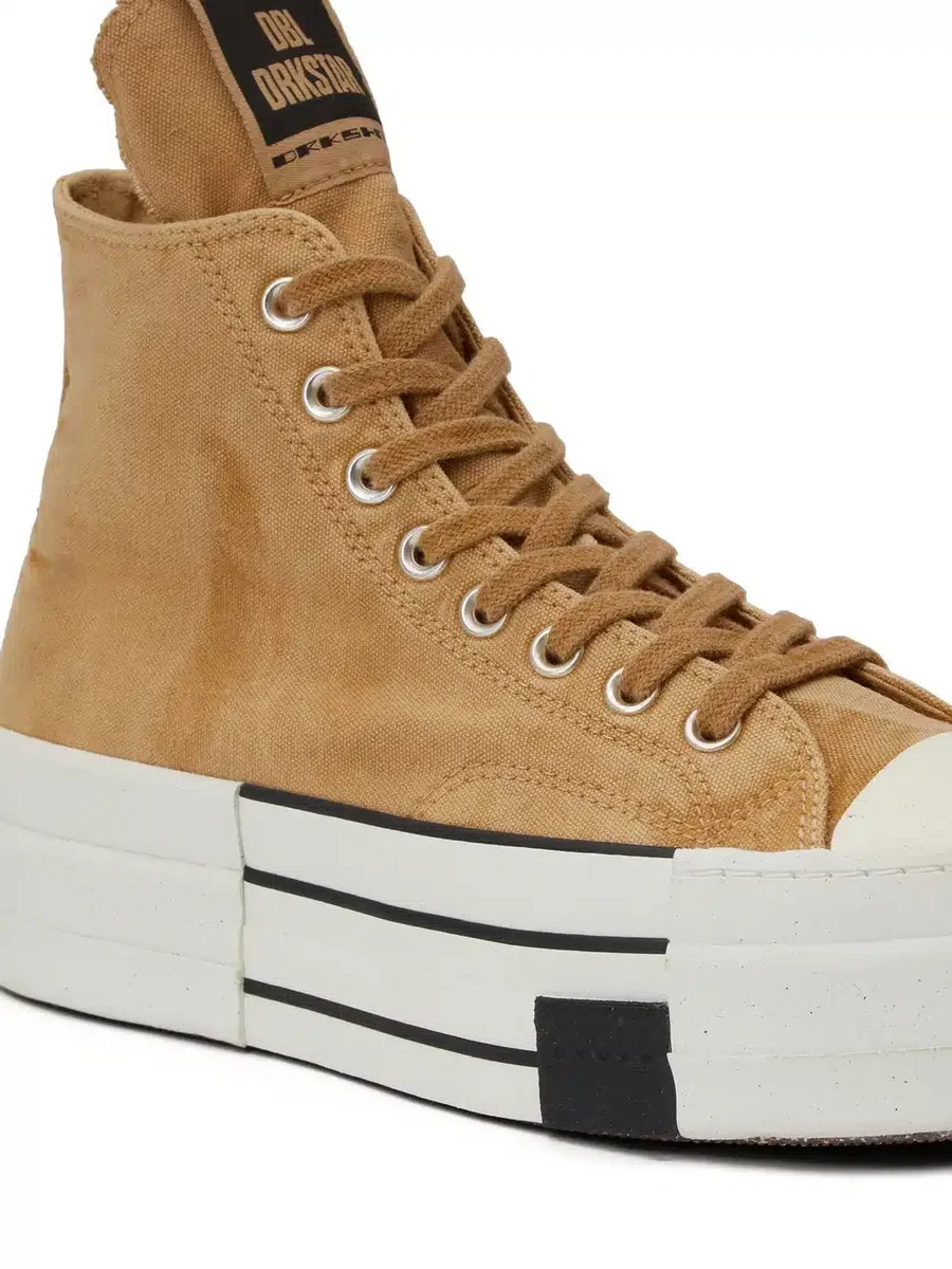 THIS LACED HIGH TOP SHOE IS BASED ON THE CLASSIC CONVERSE 70’S CHUCKS. IT HAS A SIGNATURE DRKSHDW ELONGATED TONGUE WITH A BRANDED WRAP AROUND WOVEN LABEL BEARING THE MODEL NAME.