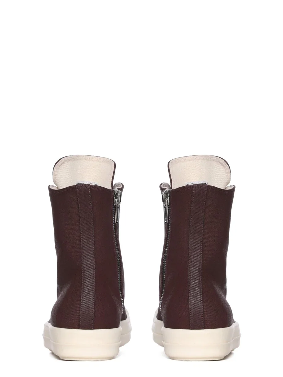 THESE SNEAKS ARE ABOVE ANKLE HEIGHT AND FEATURE EIGHT EYELETS, LACES, A ZIPPER ON THE INSIDE ANKLE FOR EASY FASTENING, TOE CAPS AND SHARK TOOTH SOLES.