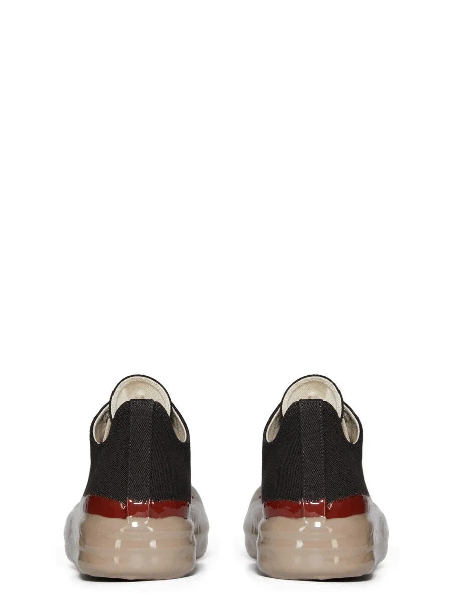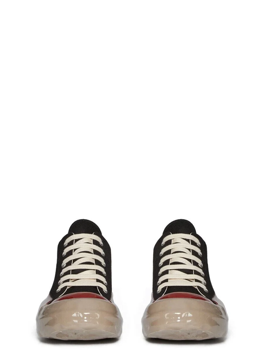 DRKSHDW FW25 CONCORDIANS LOW SNEAKS IN BLACK/RED/DRK BEIGE 13OZ OVERDYED DENIM