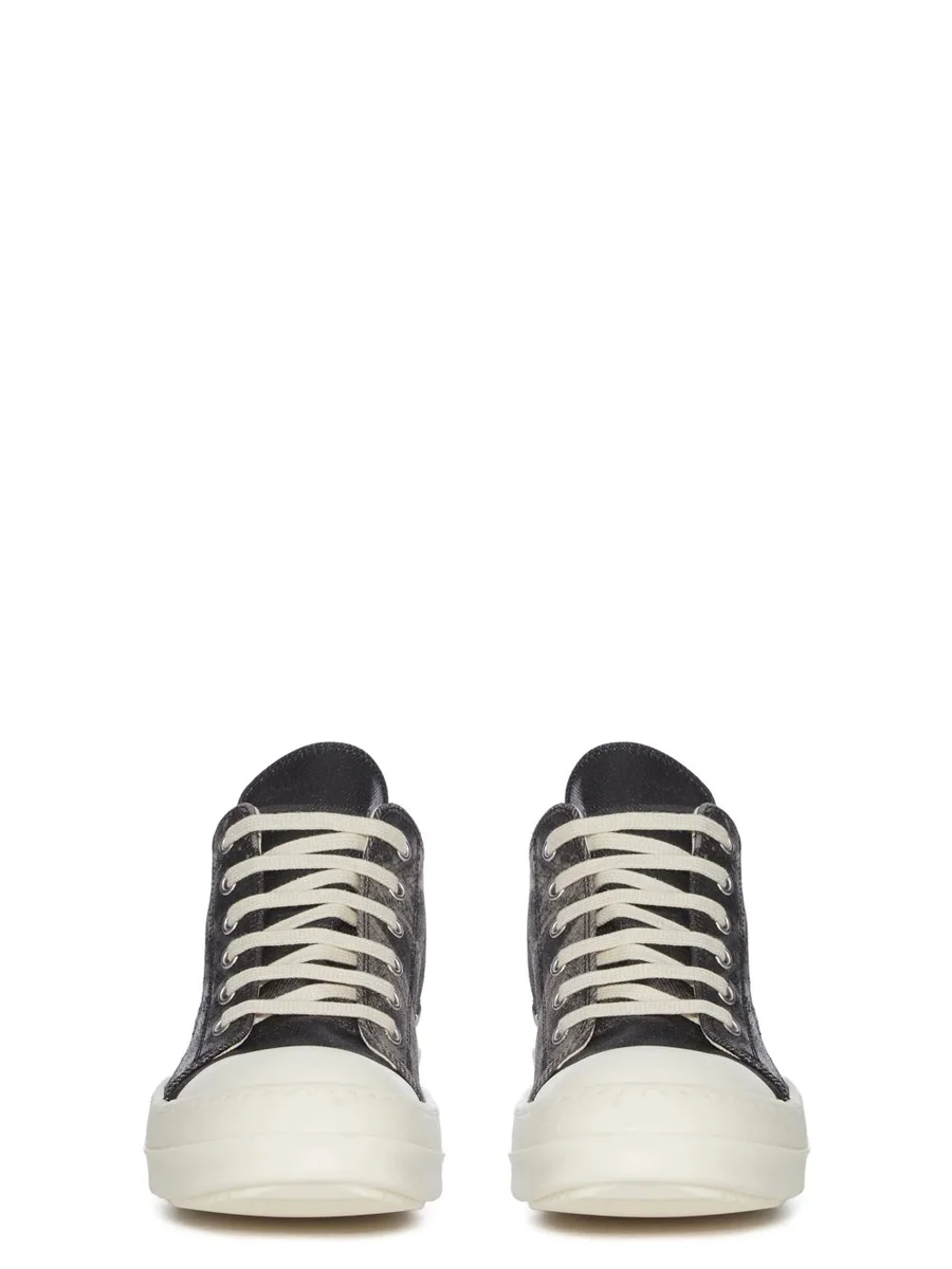 DRKSHDW FW25 CONCORDIANS LOW SNEAKS IN BLACK WASHED FOIL/MILK/MILK 13OZ WASHED FOIL DENIM