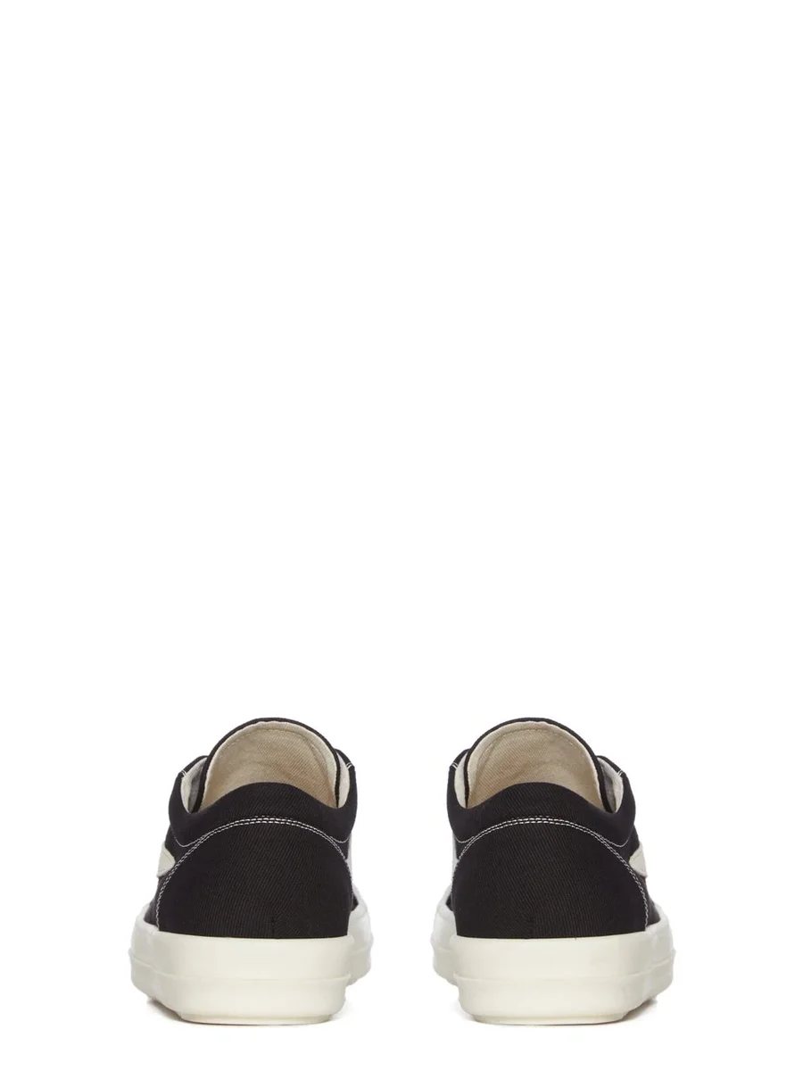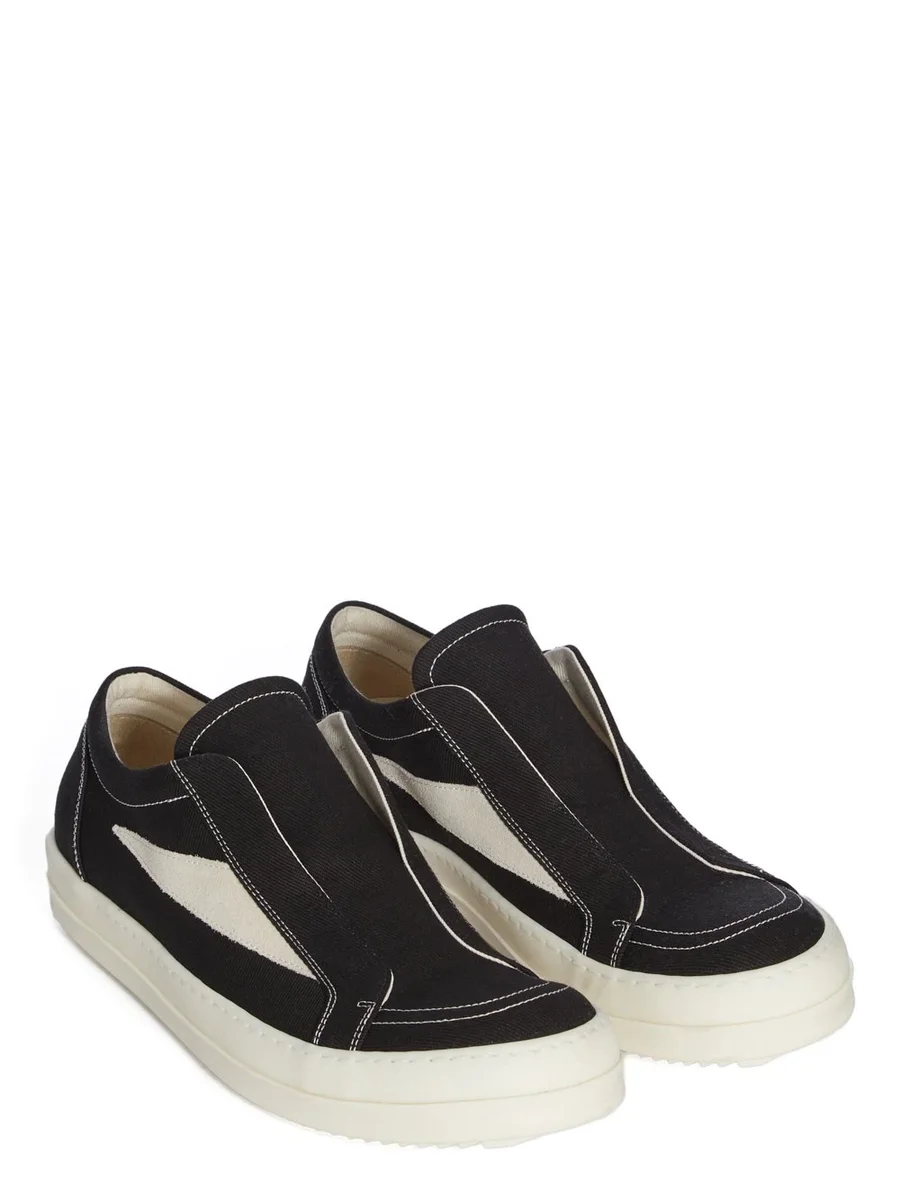 DRKSHDW FW25 CONCORDIANS LACELESS VINTAGE SNEAKS IN BLACK/MILK/MILK 13OZ OVERDYED DENIM AND SUEDE LEATHER