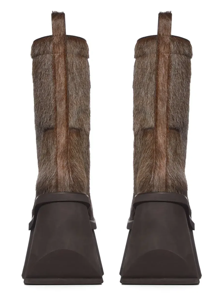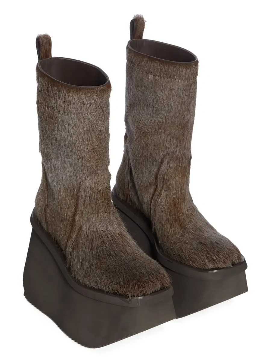 RICK OWENS FW25 CONCORDIANS RUNWAY FACTORY BOOTS IN INDIGO MELANGE UNSHAVED COW LEATHER
