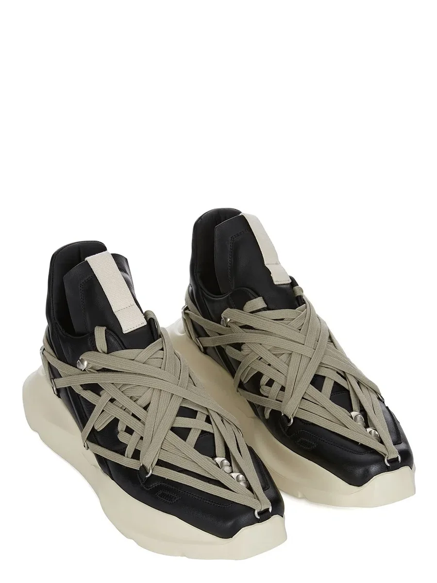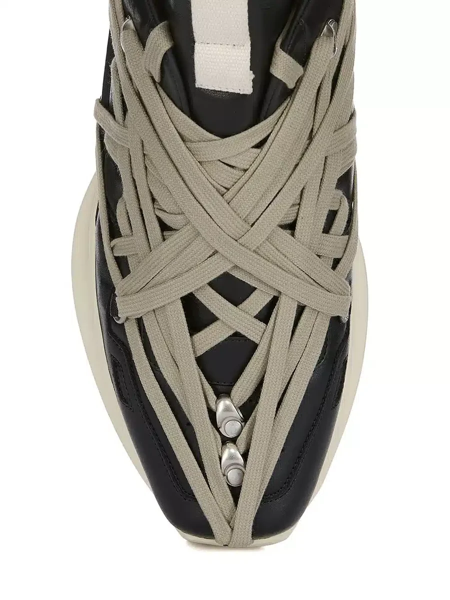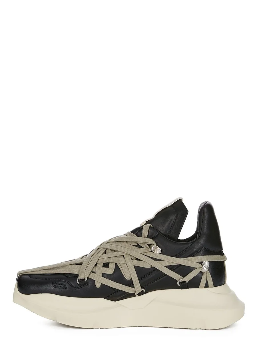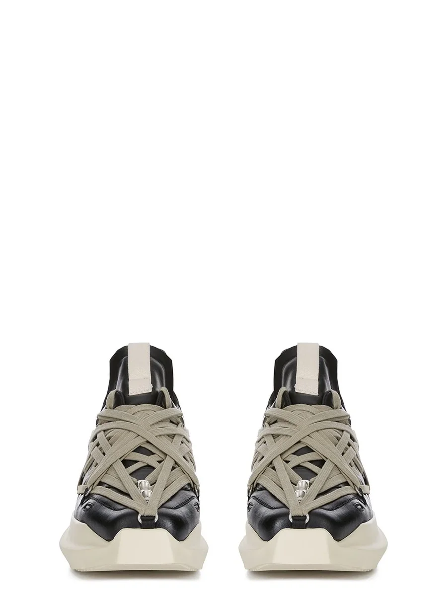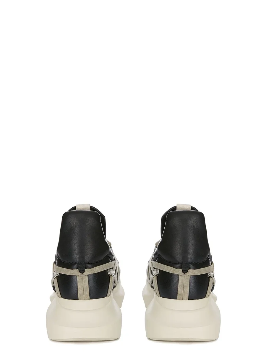 RICK OWENS FW25 CONCORDIANS MEGALACE® GETH RUNNER IN BLACK/PEARL/MILK FULL GRAIN COW LEATHER