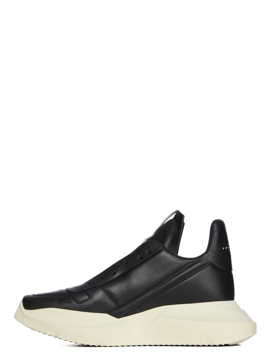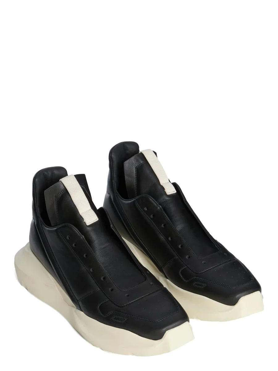 RICK OWENS FW25 CONCORDIANS GETH RUNNER IN BLACK/BLACK/MILK/MILK FULL GRAIN COW LEATHER