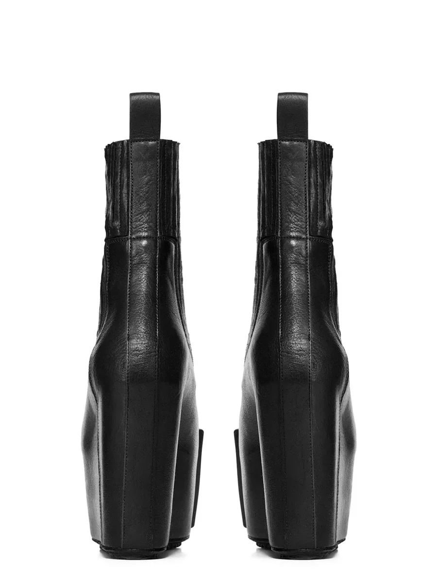 RICK OWENS FW25 CONCORDIANS GRILLED WEDGE BEATLE IN BLACK WAXY GOAT LEATHER