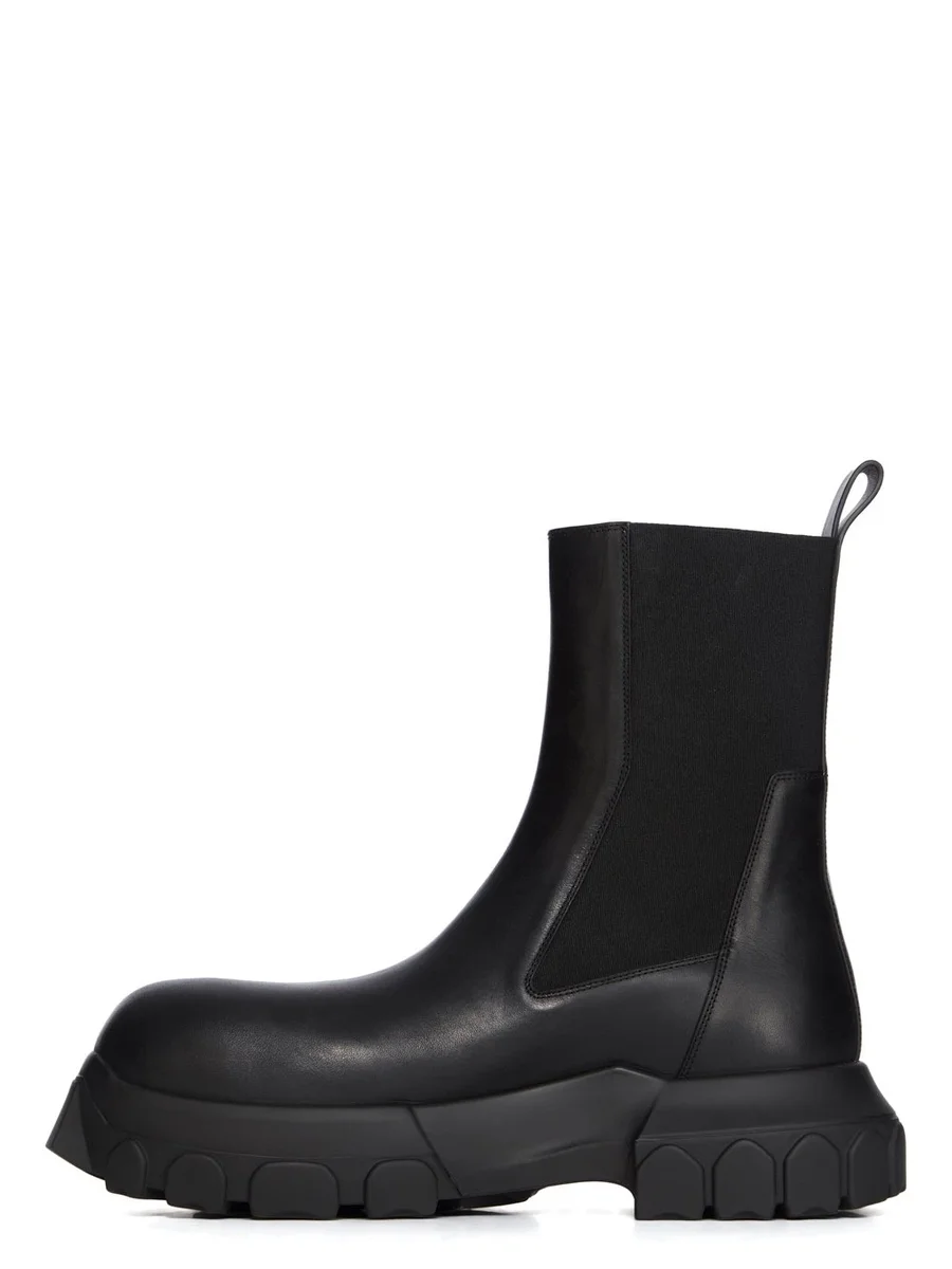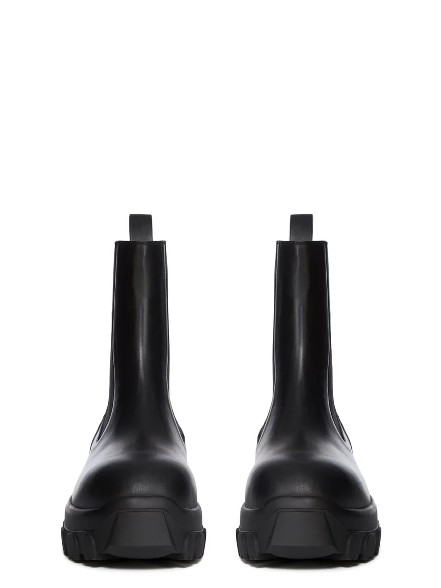 RICK OWENS FW25 CONCORDIANS BEATLE BOZO TRACTOR IN BLACK/BLACK GROPPONE COW LEATHER