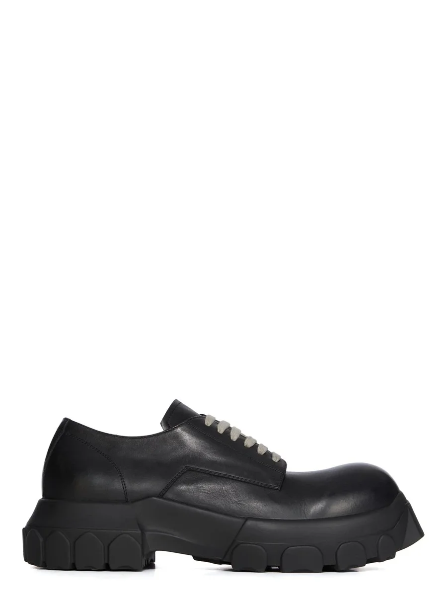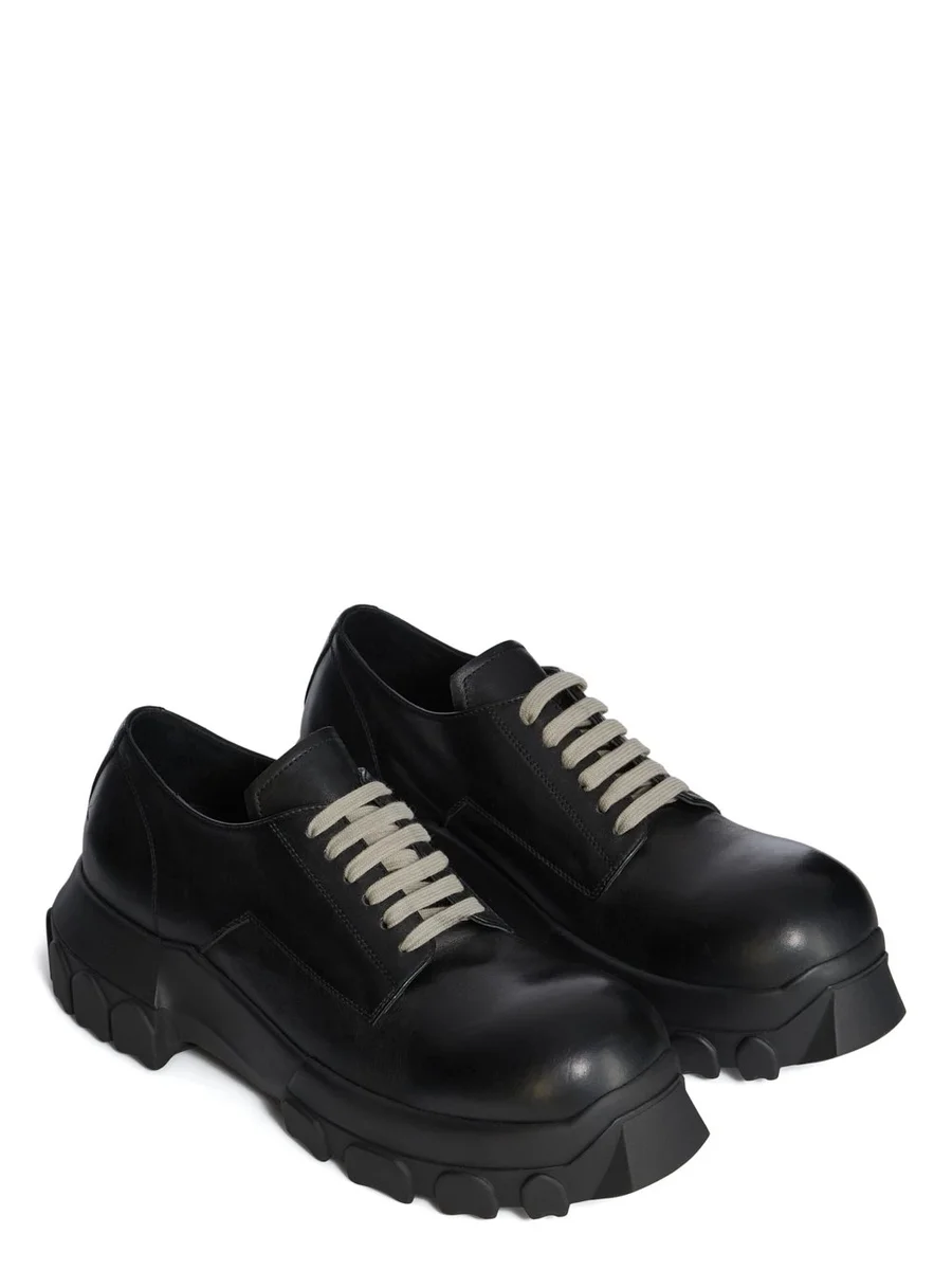 RICK OWENS FW25 CONCORDIANS LACEUP BOZO TRACTOR IN BLACK/BLACK WASHED CALF LEATHER