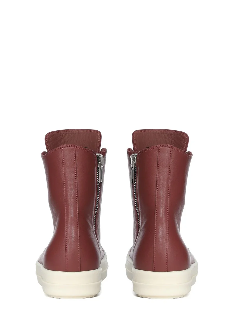 THESE SNEAKERS ARE ABOVE-ANKLE HEIGHT AND FEATURE SEVEN EYELETS, LACES, A ZIPPER ON THE INSIDE ANKLE FOR EASY FASTENING, TOE CAPS AND SHARK-TOOTHED BUMPER SOLES.