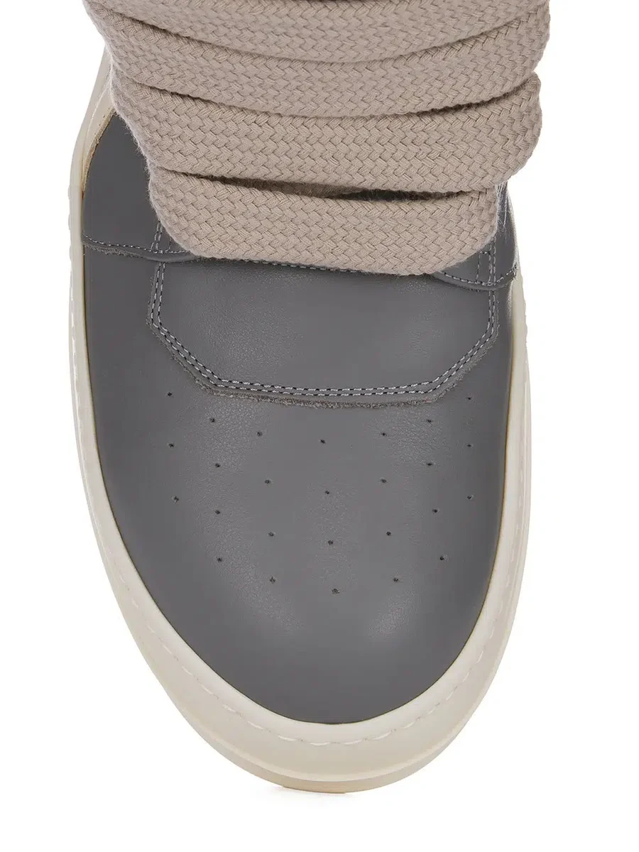 RICK OWENS FW25 CONCORDIANS JUMBOLACE GEOBASKET IN WASHED INDIGO/MILK/MILK FULL GRAIN COW LEATHER