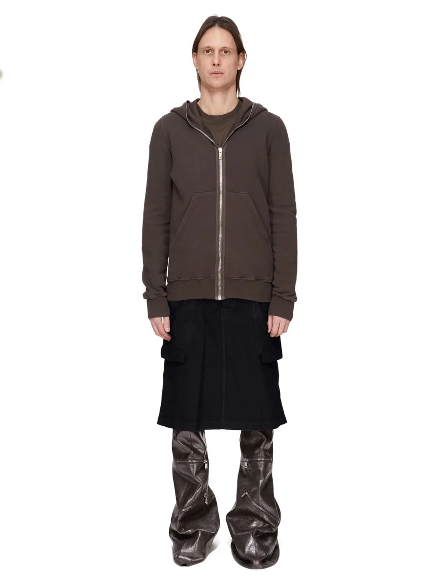 THIS STEFAN CARGO SKIRT IS KNEE LENGTH 6 POCKET SKIRT WITH A LOW-RISE AND A LOOSE FIT. IT HAS A SILVER BUTTON FLY, BELT LOOPS AND POCKET RIVETS. IT FEATURES SIDE WELT POCKETS, OVERLAYED WITH LARGE POCKETS WITH SQUARE CORNERS AND A BEVELED BOTTOM ON THE FRONT THIGHS WITH LOOPS, AND REAR POCKETS WITH FLAPS AND SCRATCH CLOSURES