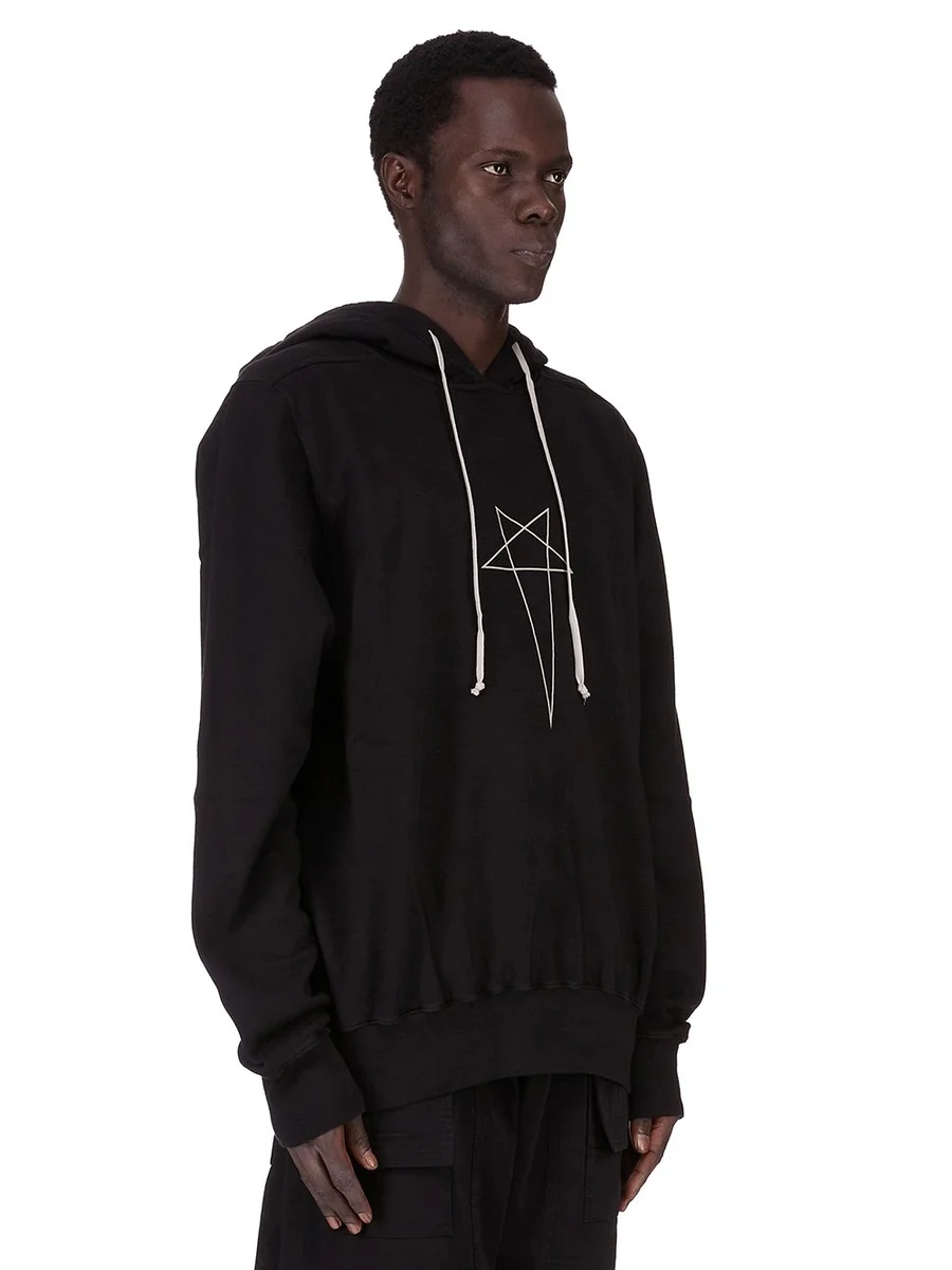 THIS OVERSIZED HOODIE IS HIP-LENGTH, WITH A LOOSE FIT AND LONG SLEEVES. IT HAS A HOOD WITH A DRAWSTRING, RIBBED CUFFS AND WAISTBAND. IT FEATURES THE SIGNATURE LEVEL SHOULDER SEAMS AND SINGLE SEAM RUNNING DOWN THE CENTRE BACK SPINE.
